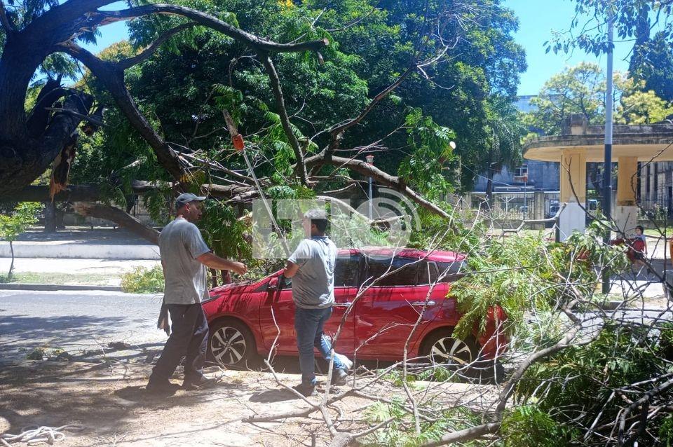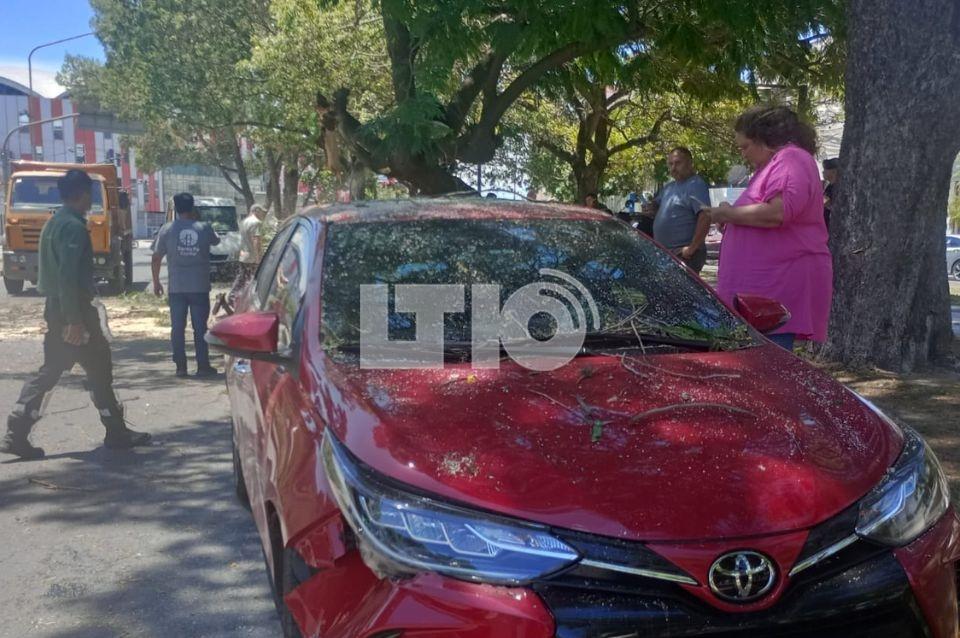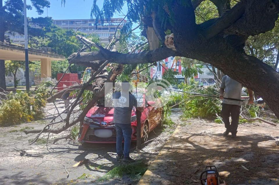 Una mujer quedó atrapada dentro de su vehículo este lunes luego de que una pesada rama se desprendiera y cayera sobre la unidad en el centro-norte de la ciudad.