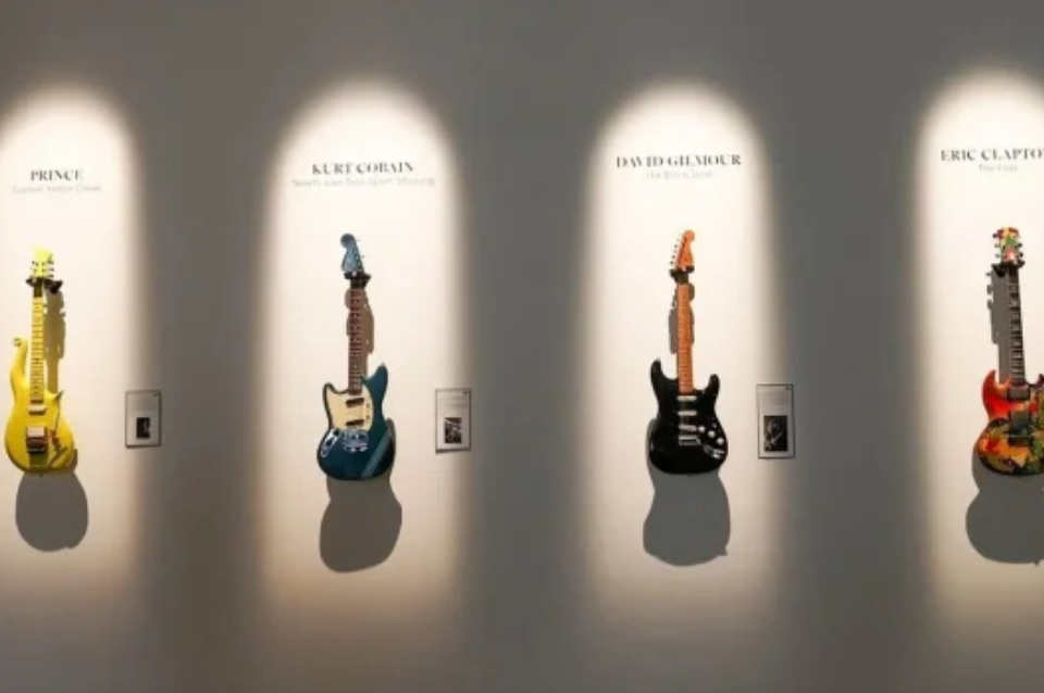 El lote se completa con instrumentos de otros artistas que marcaron el siglo XX, como David Gilmour (Pink Floyd), Jerry Garcia (The Grateful Dead), Johnny Cash, John Coltrane y Eric Clapton, en un recorrido por distintas épocas y estilos de la música popular.