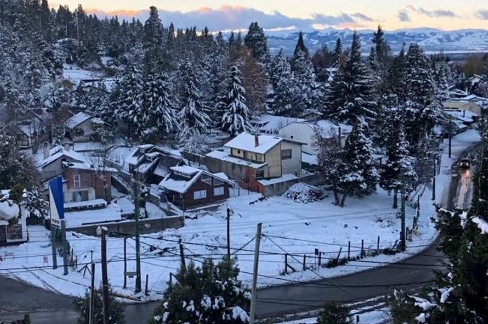 El ingreso de un frente frío originó este martes una sorpresiva nevada en Bariloche y El Bolsón,  ubicadas al noroeste de Río Negro, que tiñó de blanco dos lugares que hasta hace pocos días tenían temperaturas extremas y riesgo de incendios forestales.