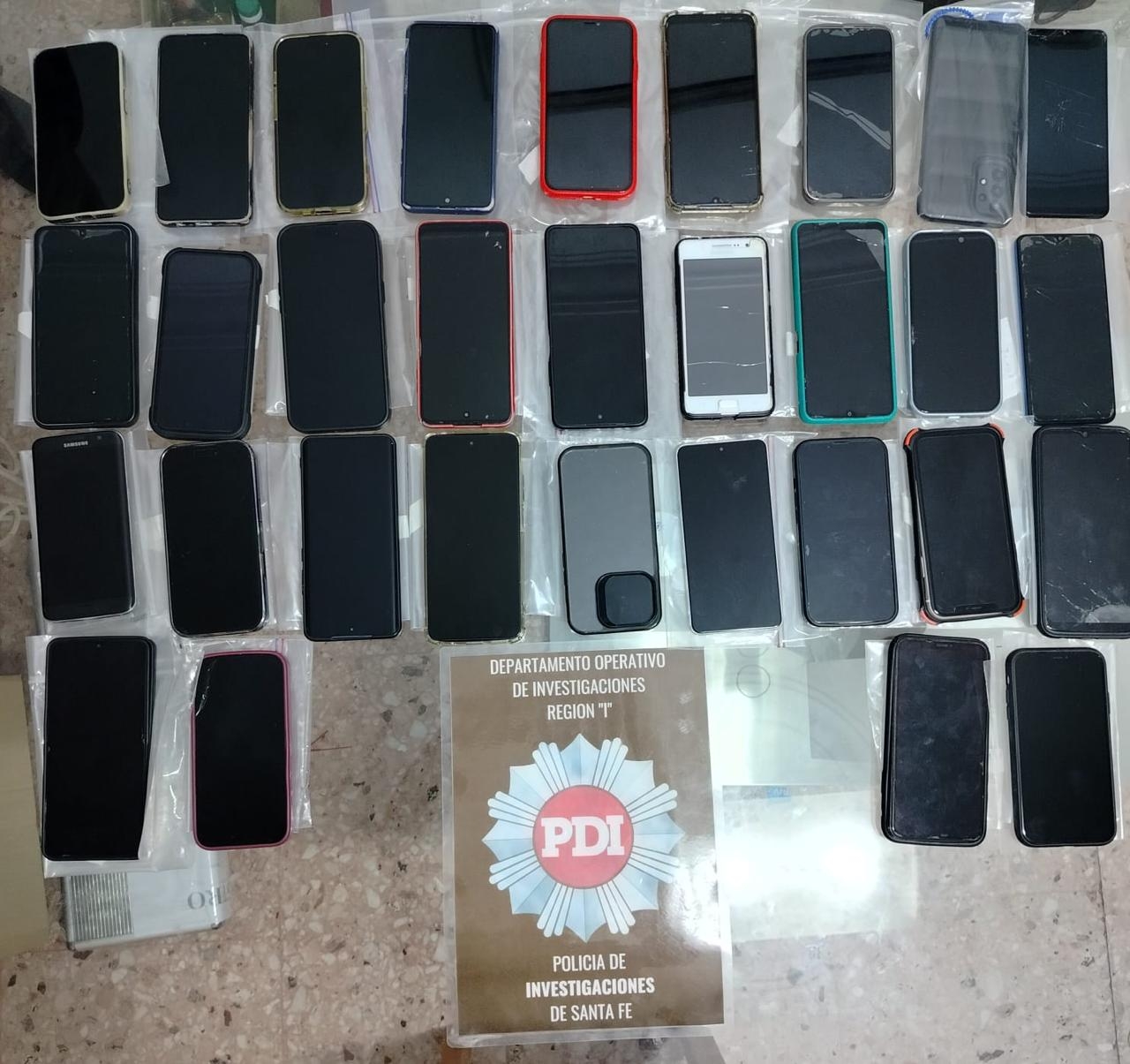 Entre los elementos secuestrados en el allanamiento figuran 32 teléfonos celulares; 25,1 gramos de cocaína; 1,8 gramos de marihuana; dos notebooks; dos cuadernillos con anotaciones de apuestas; varios mazos de cartas de póker; una balanza de precisión y dos platos con vestigios de estupefaciente; tres pasaportes y una credencial policial.