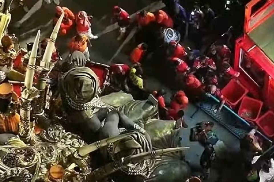 El dramático incidente fue registrado por el público y por la transmisión en vivo del carnaval. En las imágenes también se pudo observar al personal de apoyo, intentando maniobrar la carroza en plena desesperación.