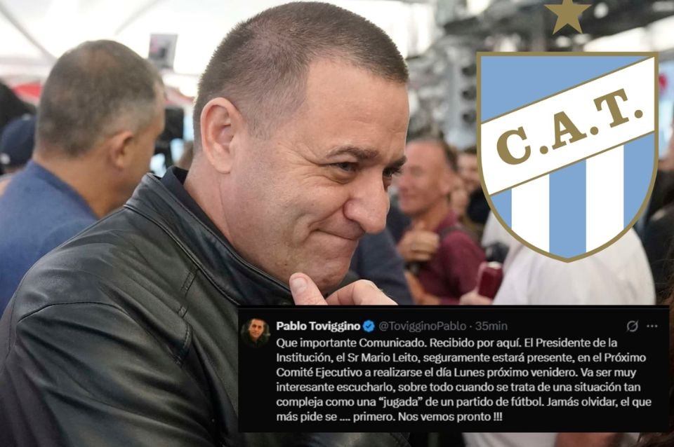 Horas después del duro comunicado de Atlético Tucumán por el arbitraje de Fernando Espinoza en la derrota ante Instituto, Pablo Toviggino, tesorero de AFA, utilizó su cuenta de X para responderle públicamente al club y, en especial, a su presidente Mario Leito. El dirigente adoptó un tono desafiante y anticipó que será “muy interesante” escuchar su postura en la próxima reunión del Comité Ejecutivo.
