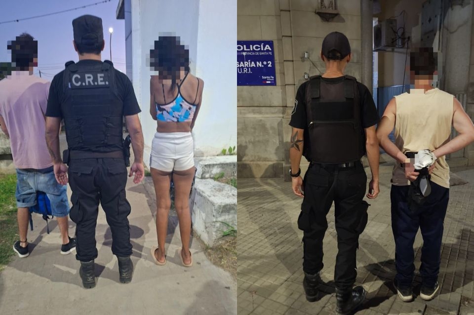 El primer procedimiento tuvo lugar en la intersección de San José y Bulevar Gálvez. Allí, los efectivos identificaron a una pareja (un hombre de 25 años y una mujer de 32) que no pudo acreditar su identidad ni justificar su presencia en la zona.