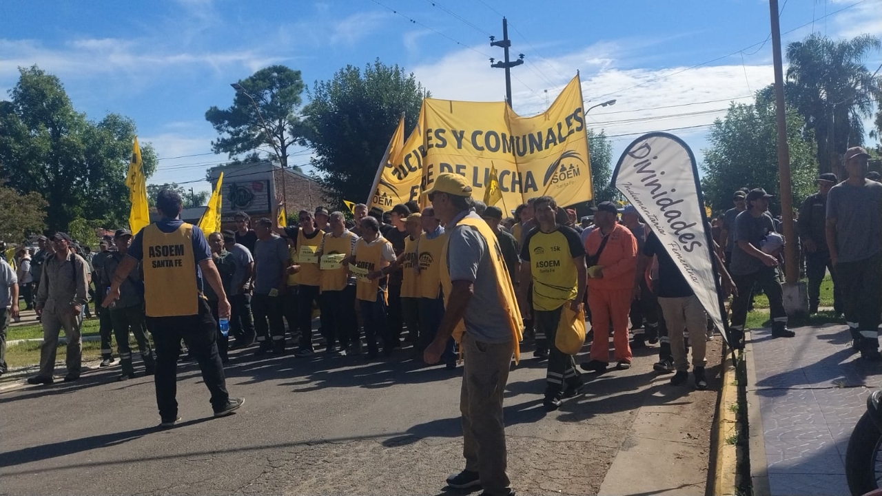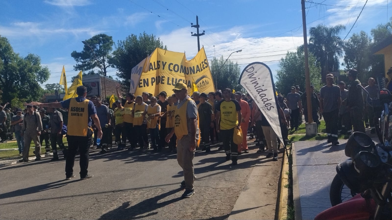 Una numerosa columna de trabajadores municipales afiliados a la Asociación de Obreros y Empleados Municipales (ASOEM) se manifestó este miércoles en la ciudad de Sauce Viejo. La protesta, que congregó a empleados de distintas localidades de la región, tiene como ejes centrales el reclamo por la libertad sindical y el rechazo a los descuentos aplicados por días de paro.