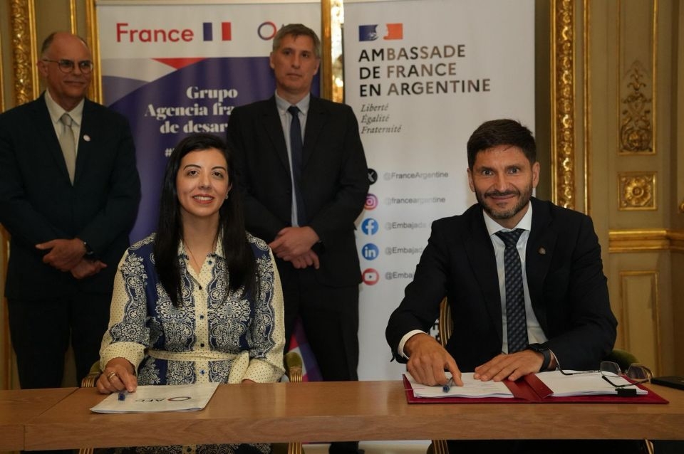 La firma del acuerdo se realizó en la Embajada de Francia en Buenos Aires, y contó con la participación del embajador Romain Nadal, el gobernador Maximiliano Pullaro y la directora de la AFD en Argentina, Lorena Chara. También estuvieron los ministros de Economía, Pablo Olivares; de Salud, Silvia Ciancio; el director Agencia de Cooperación Económica y Financiamiento Externo; Gonzalo Saglione, la Subsecretaria de Energías Renovables y Eficiencia Energética, Cecilia Mijich, entre otras autoridades.