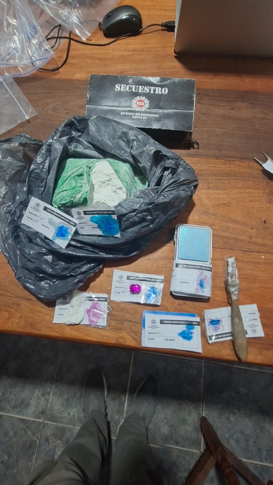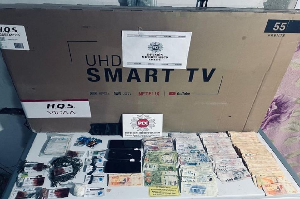 Además de la detención de las cuatro personas, se secuestraron 417,79 gramos de cocaína fraccionada para su venta al menudeo y en trozos compactos; 102,96 gramos de marihuana; una balanza de precisión; recortes de nylon y de papel satinado; distintos elementos con vestigios de cocaína y de marihuana y 3.340.150 pesos y 200 dólares estadounidenses.