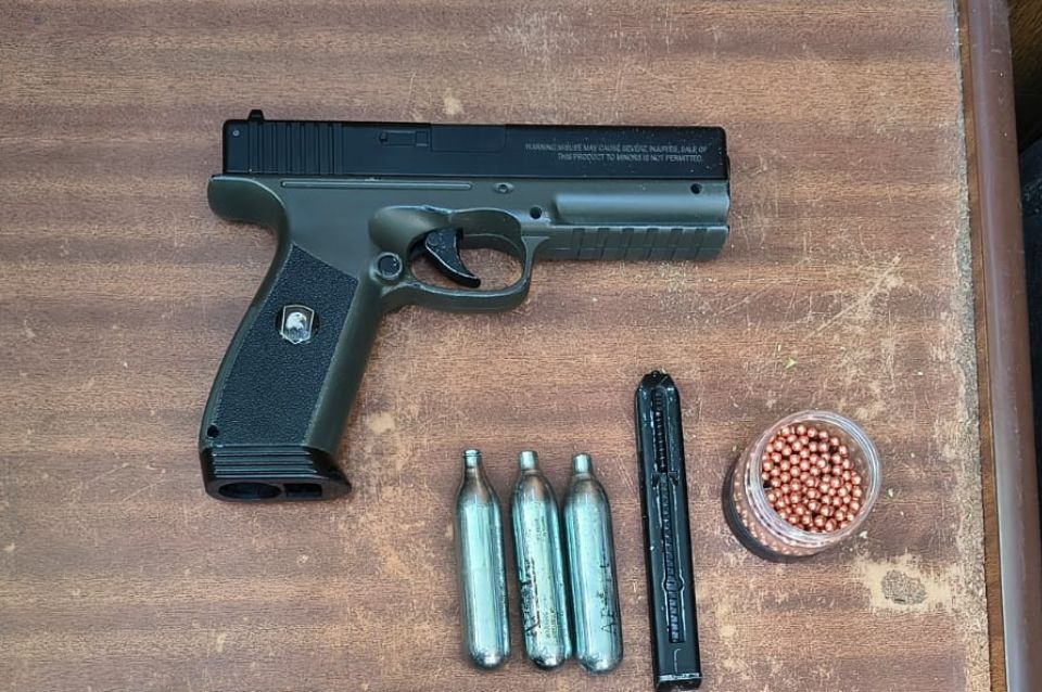 Una vez en el interior, los efectivos procedieron a la identificación de los tres adolescentes: uno de 16 años y dos de 15. Durante la requisa de la finca, se secuestró una réplica de pistola 9mm de aire comprimido con tres garrafas de gas, un frasco con balines de acero de 4.5 mm, un arma de fabricación casera (denominada habitualmente como "tumbera") de calibre 22 y una cuchilla.