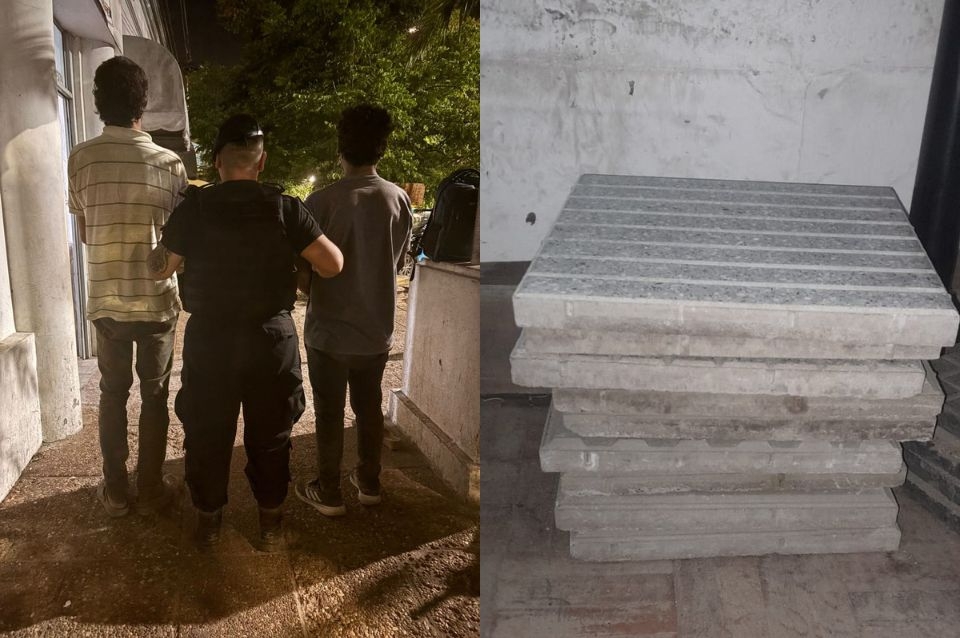 Tras un patrullaje por la zona, los efectivos interceptaron a dos hombres que transportaban elementos sustraídos del establecimiento. Se trataba de un cargamento de baldosas.