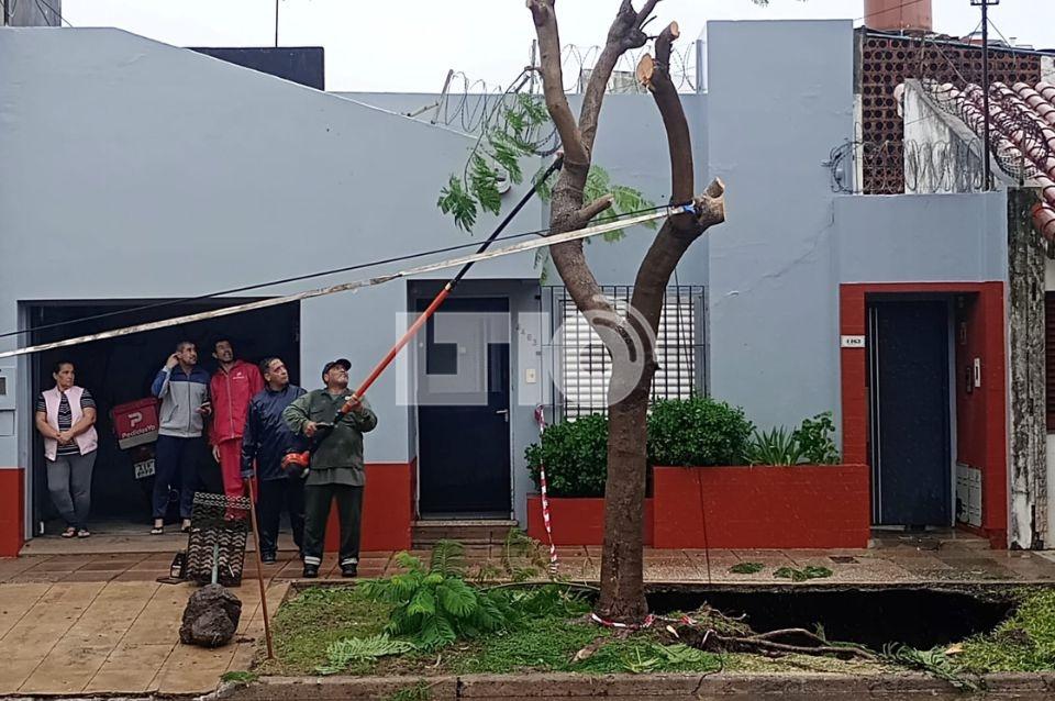 El riesgo en el lugar es muy grande, ya que había un árbol justo en el sector donde se formó el cráter y se rompieron cañerías pertenecientes a Aguas Santafesinas.