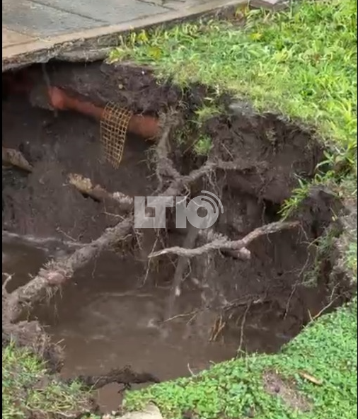 A través del móvil de LT10, un vecino que vive frente a la vereda donde se formó el socavón contó que "se escuchó como se que cayó mucha agua de la nada y al salir vi el socavón terrible que se comió la mitad de la vereda".