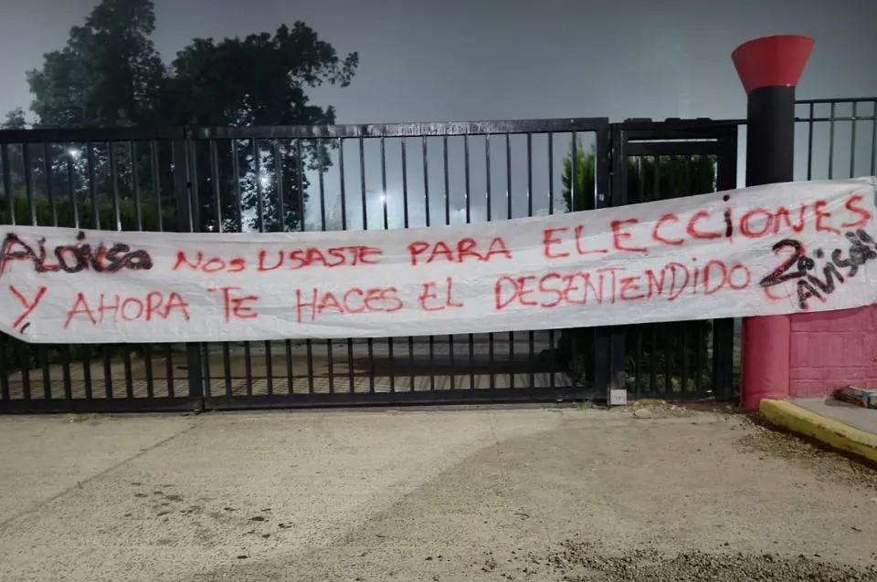 El clima en Colón suma otro capítulo de tensión en la previa del partido frente a Godoy Cruz. En la madrugada de este viernes apareció una nueva bandera dirigida al presidente José Alonso en el portón principal de la sede sobre avenida JJ Paso.