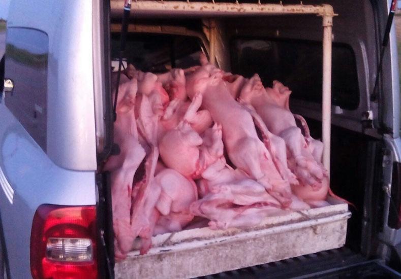 Durante la jornada del sábado y en un control se tránsito vehicular fueron secuestrados 47 lechones faenados sobre la ruta provincial N° 177, en el departamento de Villa Constitución, que eran transportados de manera ilegal sin el cumplimiento de la normativa sanitaria y sin poder justificar la procedencia de los animales.