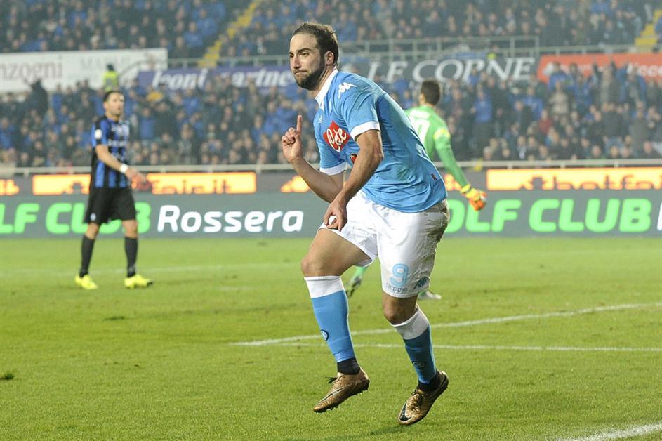 El delantero Gonzalo Higuaín marcó dos goles en la victoria de Napoli como visitante frente Atalanta por 3-1. Con estas dos conquistas, Higuaín llegó a los 16 gritos en la temporada y es el máximo goleador del campeonato.