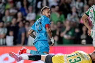 El astro brasileño anotó tres goles en el triunfo del Peixe por 3-0 ante Juventude para soñar con la permanencia.